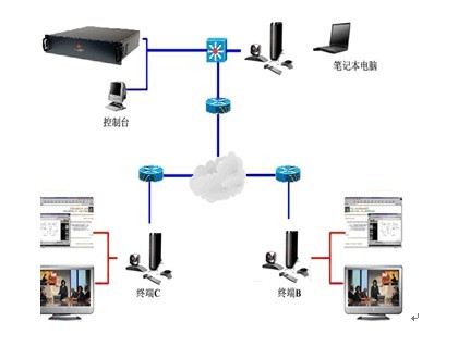 考慮到各分會場之間采用網絡帶寬不高,在承載視頻業務的同時還要運行其它業務,資源比較緊張。而本方案建議使用的MCU產品具有帶寬優化功能。使用該功能后不被任何會場觀看的終端,視頻速率自動降低,僅保證基本的音頻和控制信令的傳輸能力。即不被其它會場觀看到的終端與MCU之間僅保持最低速率的連接,此終端被其它會場觀看時可以立即切換回原有會議帶寬,會議和圖像都保持連續。通過上述技術,就可以有效的節約寶貴的帶寬資源。
