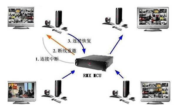 當網絡出現擁塞或者故障,終端與會議斷開連接后,MCU可以通過斷線重邀功能將終端邀請重新加入會議。使用此功能可以保證終端在斷開連接后會重新被邀請加入會議,免去了在網絡狀態不穩定而造成終端斷線時,會議管理員頻繁邀請終端的煩惱。