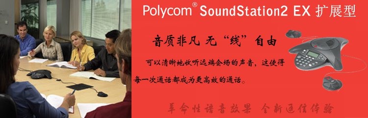 SoundStation2傳送的卓越語音質量相當于SoundStation Premier的效果,其麥克風的靈敏度比獲獎的SoundStation 提高了50%。與會者在3米之內以正常語調說話,可以清晰地收聽遠端會場的聲音?!@使得每一次通話都成為更高效的通話。再加上擴展麥克風組成 SoundStation 2 EX可增強拾音范圍,以滿足更大型會議室需求! |
