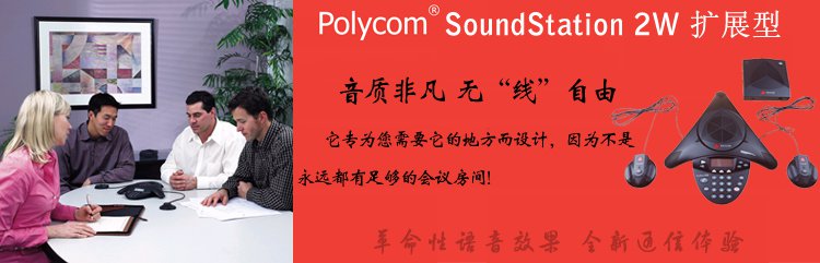 SoundStation2W有著優異的音質,2.4GHz和1.9GHz無線電技術,再加上安全的聲音加密技術,持續通話時間24小時和通過手機撥號的功能,可將會議電話應用至無線網絡。它已經成為了日常會議的新標準。 SoundStation2W在雙方交談時傳達聲音的效果和麥克風的靈敏度都是原來的SoundStation能夠達到的效果的兩倍。它的安全性和所提供2.4GHz和1.9Ghz頻段的電磁波能夠在任何模擬電話線的環境下提供簡易的、智能無線功能。距離基座45米之內的無線電跳頻功能避免了中途的阻斷,再加上長效的鋰電電池,SoundStation 2W真正的滿足了今天對高質量的聲音效果和使用的適應性的要求。 |